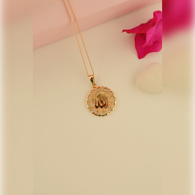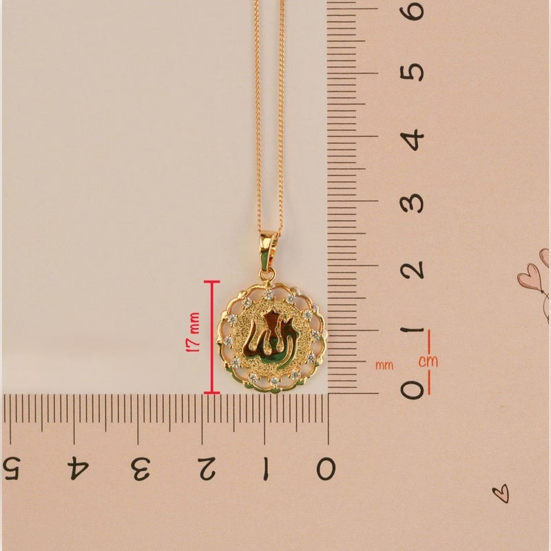 This elegant necklace is crafted from rhodium-plated silver alloy, also known as medical gold, featuring the inscription of "Allah" and adorned with zircon stones. Hypoallergenic and perfect for daily wear. Allah Necklace Gold Allah Pendant Necklace Embellished Stones Gold Necklace Islamic Jewelry