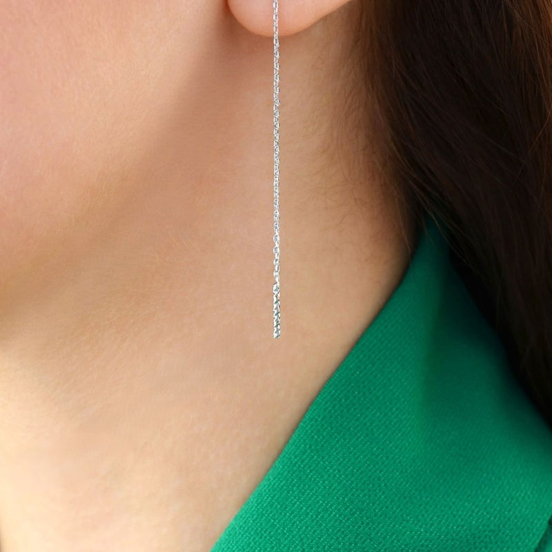 Long Chain Earrings Thin Chain Earrings Huggie Earrings Gold Chain Silver Chain Earring Set
