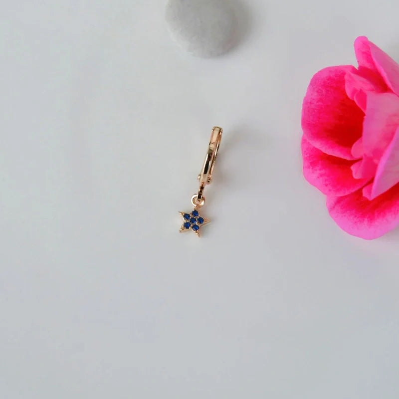Enhance your style with our Navy Blue Star Dangle Helix Earrings. Made from rhodium-plated xuping, also known as medical gold, this striking piece is ideal for helix, lobe, daith, forward helix, and cartilage piercings.