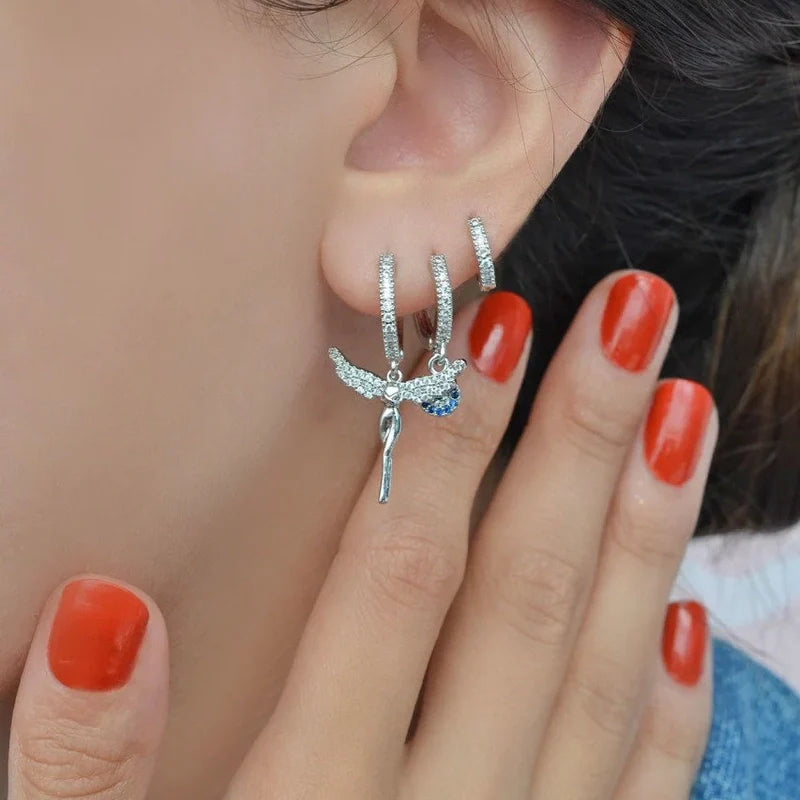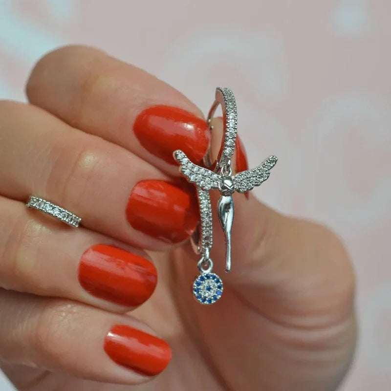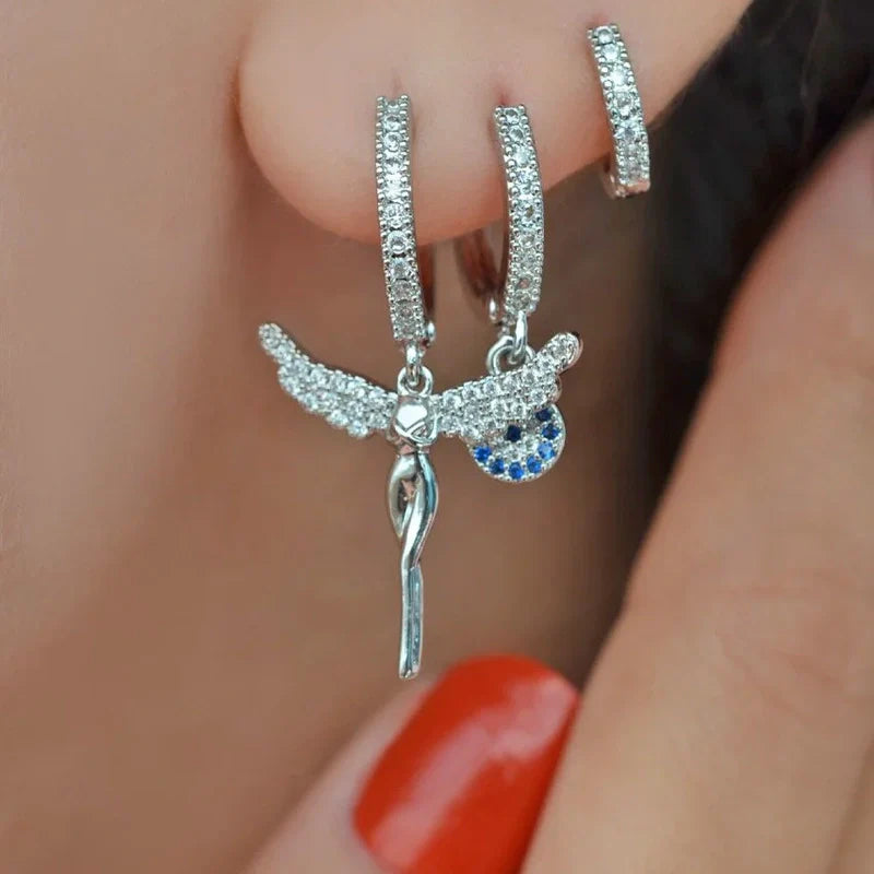 Angel Earrings Dangle Earrings Drop Earrings Evil Eye Earring Set 3 Of Set Triple Set Earring Set Silver
