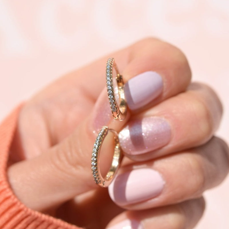 Hoop Earrings Stoned Huggie Hoop Earrings Midi Hoop Earrings Gold Hoops Earring set Gold Earrings